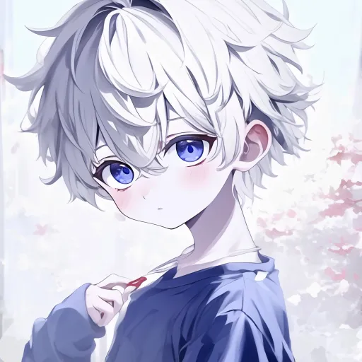 The character has silver-white hair, smooth strands, and he is wearing a deep blue shirt, designed simply yet elegantly, showcasing youthful vitality. The body is turned sideways, the figure is centered, and the background features a light white tone with soft, faint floral patterns barely visible, creating a dreamy atmosphere. The character's eyes are as clear as crystal, with a slight blush on the cheeks, and the overall image exudes a feeling of tenderness and sweetness. --ar 1:1 --stylize 100 --niji 6 --sref https://images.gogpt.vip/aigf/m_origin/20260112/1656733/jhh7w5m04eqnq71t.jpeg --cref https://images.gogpt.vip/aigf/m_origin/20260112/1656733/gcv2s968e1emn76d.jpeg --cw 56 --sw 395