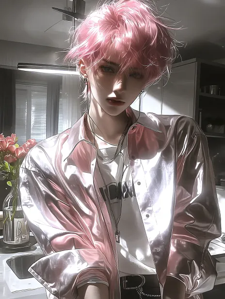 The character is male, with cherry blossom pink hair and casual home style clothing. The setting is at home and the style is bright --ar 3:4 --stylize 226 --niji 7 --sref https://images.gogpt.vip/aigf/m_origin/20260124/2038931/53v9mmr1mofzae4j.jpg https://images.gogpt.vip/aigf/m_origin/20260124/2038931/1nbllro1if11120n.jpg https://images.gogpt.vip/aigf/m_origin/20260124/2038931/lt50mb77a0i8594h.jpg --sw 1000
