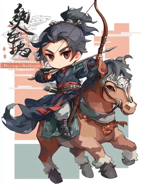 https://images.gogpt.vip/aigf/m_origin/20260126/2030603/fskcs42xrcn6bhkc.jpg https://images.gogpt.vip/aigf/m_origin/20260126/2030603/oddwotyf0opxck17.jpg National trend comic style, illustration themed around Hu clothing and horsemanship. The main subject of the image is a chibi version of a Zhao State knight, with a round face, sharp eyes and brows, dressed in narrow-sleeved Hu clothing featuring contrasting colors (red and black as the main tones), a bronze short sword hanging at the waist, feet in leather boots resting on the stirrups, and an exaggerated, powerful bow-drawing action with dynamic speed lines on the arrow tip. The warhorse is cartoonish in design, with a standing mane, large expressive eyes, and decorated with traditional patterns (cloud patterns, meander patterns). The background is composed of geometric color blocks, with the calligraphic font "Hu clothing and horsemanship" on the left side, and embellishments such as Warring States knife coins and bronze halberds on the right side. The aspect ratio of the image is 4:3, with bright and vivid colors, strong lines, suitable for printing as cultural stickers. --ar 3:4 --v 7 --stylize 100 --iw 0.25 --sref https://images.gogpt.vip/aigf/m_origin/20260117/2030603/zznuhu6mby0q8gnc.png https://images.gogpt.vip/aigf/m_origin/20260117/2030603/h4fjsmq6ar05xe0p.jpg https://images.gogpt.vip/aigf/m_origin/20260126/2030603/fsdmq8c7he3ylj3u.jpg