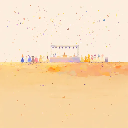 On the flat ground, there is a stage where different people are performing in various costumes. --ar 1:1 --stylize 100 --niji 7 --sref https://images.gogpt.vip/aigf/origin/20251113/1763048047474012_4.png https://images.gogpt.vip/aigf/origin/20251113/1762997060105716_1.png https://images.gogpt.vip/aigf/origin/20251113/1763048047474012_2.png