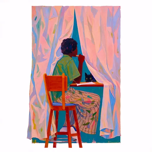 There is a boy sitting on a bar stool, holding his chin with his hand. Behind the curtains, there is a little cat hidden. Super close ups, close ups, ultra-high definition, roundtable meetings, ultra clear details, high resolution, vector graphics, --ar 1:1 --stylize 589 --niji 7 --sref https://images.gogpt.vip/aigf/m_origin/20251119/388946/e7ggx4a6l3hdv8vb.jpg https://images.gogpt.vip/aigf/m_origin/20260126/388946/ifu1hw3sqlfjca63.png https://images.gogpt.vip/aigf/m_origin/20260126/388946/x669n36wj4avlwo0.png