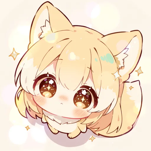 Subject Content: A cute chibi-style beast-eared girl with fox ears and a fox tail, looking up at the camera with sparkling starry eyes, her expression innocent and naive, overall soft and healing, with a rounded and petite figure. Scene Setting and Style Reference: Japanese chibi cartoon illustration style, with soft and rounded lines, a clean and sweet art style similar to healing anime and children's picture book styles, with a simple background that doesn’t distract from the subject, featuring a dreamy bokeh atmosphere. Color Palette: The main colors are warm light gold, gradient mint green, and milk gray, complemented by rosy blush and a pink nose, overall bright and soft, fresh and sweet, with high saturation but not glaring, mainly warm tones, supplemented by dreamy pastel pink and light gold highlights. Composition Perspective: A front half-body close-up with a slightly downward angle, the little fox centered in the frame, full and cute composition that emphasizes the face and gaze, with light and shadow falling from an oblique upper angle, creating soft shadows. --ar 1:1 --stylize 100 --niji 7