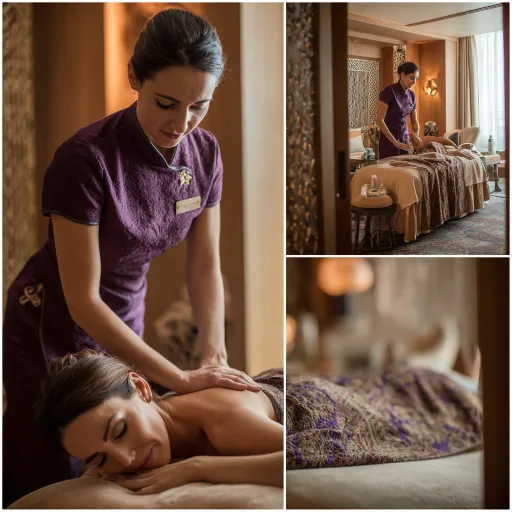 In a luxury hotel, Thai female masseuses dressed in massage attire provide Thai massages for Lebanese guests. Output images in 10 different styles. The lighting is bright, and the focus of the photo is on the hotel room and the massage. The guest is Lebanese. --ar 1:1 --v 7 --stylize 100