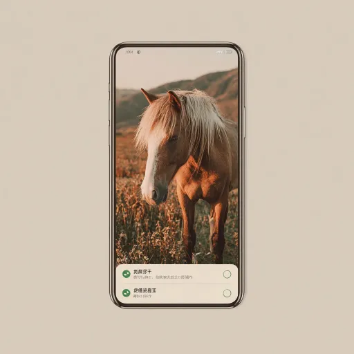 Help me generate a WeChat applet screen simulating the mobile phone page. The mobile phone displays a picture of a horse with a small circle next to it displaying the selected green tick. At the bottom of the picture there are two lines of characters, editing and one click Paper Cuttings. The horizontal screen photo and Chinese text are required --ar 1:1 --v 7 --stylize 100
