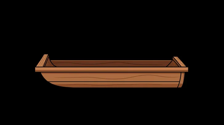 Modern style 2D game scene object, a wooden boat, side view. --ar 16:9 --stylize 100 --niji 7
