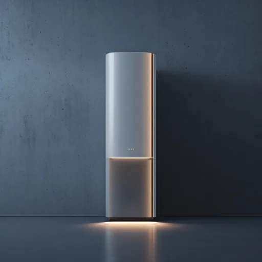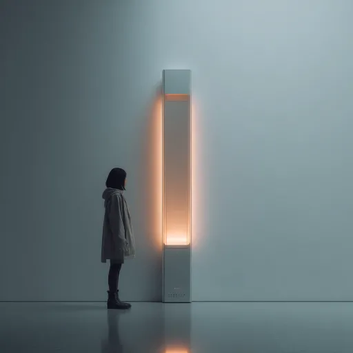 https://images.gogpt.vip/aigf/m_origin/20250908/353579/a7yjjih37dvwif3g.jpeg https://images.gogpt.vip/aigf/m_origin/20260318/353579/7ipf5qtre153eh3z.jpg A minimalist style vertical appliance, the body is embellished with ambient lighting, frosted metal material, modern simple style, minimal indoor background, person of depth. --ar 1:1 --v 7 --c 4 --stylize 82 --iw 0.3