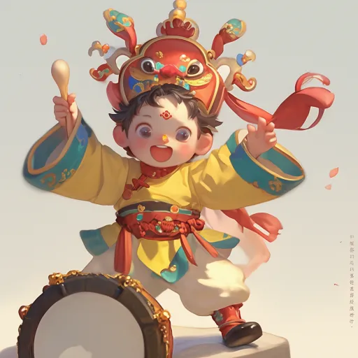 https://images.gogpt.vip/aigf/m_origin/20260323/2080733/rkv5jxei9cb4my88.png https://images.gogpt.vip/aigf/m_origin/20260323/2080733/s03psjw66120mqe2.png Soft and cute Q version IP image, male performer of Lanzhou Taiping drum, round face and big eyes, loose festive costume with yellow and red patchwork, wearing a red and yellow headpiece, with a silk ribbon fluttering on the head, holding a drum in the left hand, lifting a drumstick above the head with the right hand, one leg raised in the air while the other is slightly bent on the ground, legs apart, lively and playful expression, mini red silk at the waist, 4K HD, head-to-body ratio of 1:1.5, ultra-high-definition pixels, soft brush strokes, moderate color saturation, conveying a festive healing feeling. High resolution, 16K quality, ultra HD, best quality, multi-pose character, full-body character, golden ratio composition. --ar 1:1 --stylize 100 --iw 0.25 --niji 6 --sref https://images.gogpt.vip/aigf/m_origin/20260310/2080733/r6f3iz1d5j7kvmpq.png