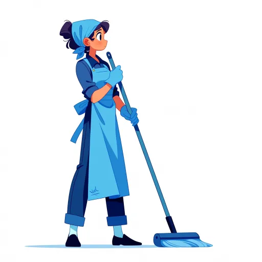 A girl has her hair up, wearing a blue headscarf, doing housework with a broom at home. Her hair is completely wrapped in the headscarf, cleaning, wearing blue gloves, with clothes in blue, pants in blue, an apron in blue, socks in light black, and shoes in black. The background is pure white. --ar 1:1 --stylize 100 --niji 7 --sref https://images.gogpt.vip/aigf/m_origin/20260317/837902/fmwj2m3vcql2hnv1.png --sw 52