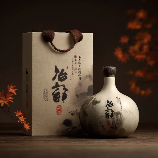 Create a packaging design for a gourd handicraft, with a background style of ink painting and real shots of the main visual elements. The name is Dongchang gourd, and the overall style is simple and atmospheric --ar 1:1 --v 7 --stylize 100