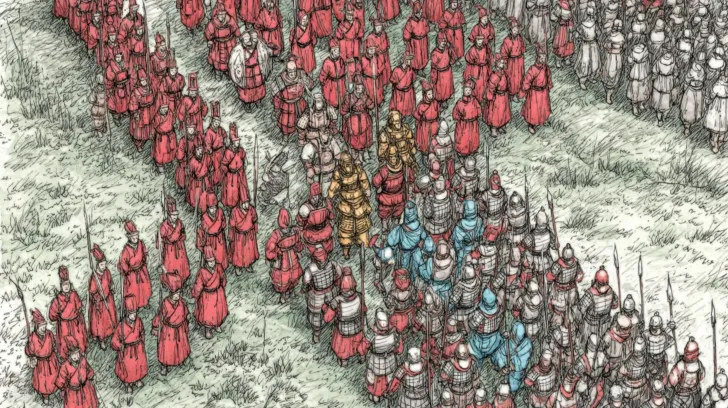 Midjourney Bot 更新时间:2026-04-01 00:11战国红色衣服的军队人群,前一个身穿金色铠甲的将军,很有信心,Manga style, --ar 16:9 --v 7 --stylize 100 --sref https://images.gogpt.vip/aigf/m_origin/20260401/2098042/0r7cgckhxdaor64a.png