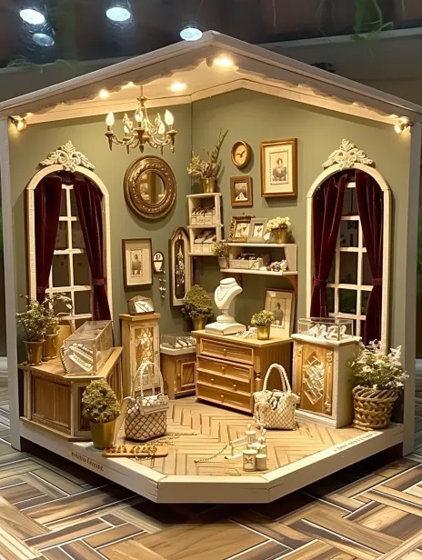 Midjourney Bot 更新时间:2026-04-01 00:13https://images.gogpt.vip/aigf/m_origin/20260331/2010358/m2bvk88do5d4cia6.png 一个微缩小屋,等距两点透视,法式复古古董店,街角中古店,维多利亚风格,温暖治愈,温馨怀旧,木质原木护墙板,人字形实木地板,绿色复古墙面,酒红色丝绒窗帘、拱形落地窗、复古雕花镜子、奢华复古风、法式复古装修、菱格纹包、藤编包、油画装饰画、毛绒地毯,多抽屉木质首饰柜台,满墙复古装饰画+画框+圆形复古镜,首饰展示头模,复古绿植花艺,木质框架复古吊灯,中古服装,柔和暖光,暖色调,低饱和度,8K高清,复古肌理,背景浅景深大光圈效果 --ar 3:4 --v 6.0 --stylize 100 --iw 0.5 --sref https://images.gogpt.vip/aigf/m_origin/20260331/2010358/izudf0now4sq74ws.png https://images.gogpt.vip/aigf/m_origin/20260331/2010358/hah1a9qitd7sv8ds.jpeg https://images.gogpt.vip/aigf/m_origin/20260331/2010358/0lce7f5dlcrw174s.jpeg --cref https://images.gogpt.vip/aigf/m_origin/20260331/2010358/8x3a8iq2ysvo6xh6.png --cw 66 --sw 836 --no 做旧,红砖,