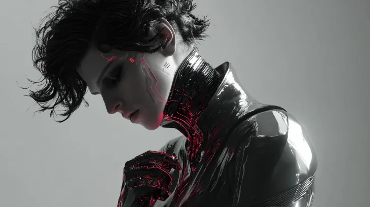 Midjourney Bot 更新时间:2026-04-01 00:14提示:【六视图表、人物设计】男性,身材修长,面色苍白。 【脸型】:尖下巴,凤眼泛着红光的日晷图案,凌乱的黑色摩登发型。 【服装】:虚幻引擎5渲染,未来派不对称长款黑色高科技风衣,由哑光碳纤维面料制成,复杂的3D打印电路图案。 【配件】:左手腕周围细细的发光红色纳米丝。 [风格]:辛烷渲染、8K、电影灯光、纯白色背景、织物纹理上的光线追踪、无武器、都市科技服装。 --ar 16:9 --v 7 --stylize 100 --no (中国古代服装:1.5)、(汉服:1.5)、(插图:1.4)、(绘画:1.4)、长袍、发夹、剑、奇幻、(最差质量:2)、(低质量:2)、低分辨率、额外手指、畸形手、畸形四肢、扭曲脸、不良解剖结构、模糊、水印、文字、签名、标志、纹理、噪音、 (动画:1.4),(卡通:1.4),草图,低多边形,平面着色,塑料皮肤,过饱和,霓虹灯发光,凌乱的背景,背景上的阴影,剪短的脚,不对称布局。