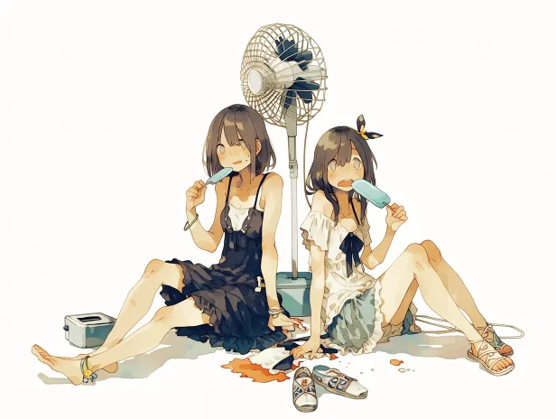 Midjourney Bot 更新时间:2026-04-01 00:16双人,姐妹,吊带裙,裙子,夏天 --ar 4:3 --stylize 100 --niji 7 --no 御姐,欧美