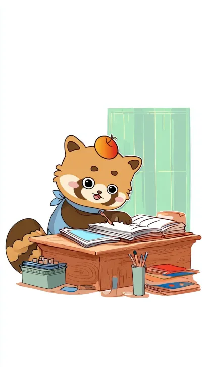 Midjourney Bot 更新时间:2026-02-07 00:03根据参考图以头戴蜜橘、身着蓝纹肚兜的都江堰萌系小熊猫为主体,让它半趴在浅木色国风书桌上,爪搭带有IP标识的亚克力笔盒,捏着小熊猫剪影书签笔,歪头看向翻开的软皮笔记本。桌面摆放同款IP文具(铅笔、藤编笔筒、便利贴),背景是淡绿窗棂配都江堰远山浅影,用低饱和莫兰迪色系与暖柔光影营造治愈感,采用扁平肌理画风,适配文创印刷。小熊猫ip根据参考图来 别改变ip本身的样子 --ar 9:16 --v 7 --stylize 100 --oref https://images.gogpt.vip/aigf/m_origin/20260206/2052470/bkse9pl2b9w79jqv.jpg --ow 400