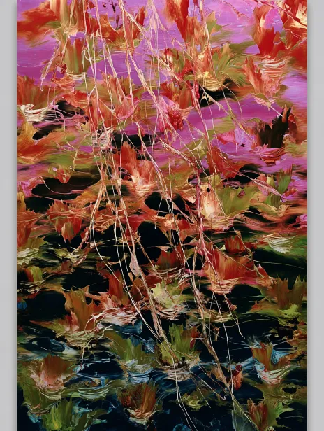 Midjourney Bot 更新时间:2026-02-07 00:06笔触厚重明显有肌理感,颜料堆叠效果突出,色彩浓郁饱和,色块衔接有笔触感,光影塑造强烈,体积感十足,画面有油画般的厚重质感,笔触粗犷不失细腻,色彩层次丰富,肌理清晰可见,兼具写实与艺术感,笔触方向随形体走势,厚涂肌理立体生动,厚涂风格,一位有着银白长发的俊美男子,头戴镶嵌红色宝石的金色华丽冠冕,裸露的上半身布满血色纹路与金色符文装饰,左臂戴着黑红金配色的护臂,他身体前倾、姿态充满张力,右手撑在黑色器物上,左手向前抓握带有红绿火焰纹路的巨大法器,背景是阴森的暗黑古风场景,布满铁链、枯骨、金色符箓与火焰状纹样,整体色调以黑、青、红、金为主,光影强烈且充满冲击力,画风细腻华丽,充满邪魅又威严的神魔氛围感,长脸型,脸部线条流畅利落,下颌角线条清晰不突兀,颧骨平缓,鼻梁挺直,眉眼间距适中,唇形饱满,面部无多余修饰,生图质感,高清素颜感,皮肤纹理自然可见,无磨皮过度痕迹,笔触兼具写意与厚重感,色彩融入传统国画色调,明暗过渡含蓄,画面点缀水墨晕染质感,人物服饰纹样刻画细致,兼具厚涂的立体与国风的雅致,高清细腻画质,8K分辨率,细节拉满,边缘清晰不模糊,色彩饱满有层次感,光影过渡自然柔和,无噪点无锯齿,画面通透干净;经典厚涂画风,笔触厚重明显有肌理感,颜料堆叠效果突出,色彩浓郁饱和,色块衔接有笔触感,光影塑造强烈,体积感十足 --ar 9:16 --c 14 --stylize 800 --niji 7 --no Profile,侧脸,脸部特写,3D画风,现实画风,扭曲脸部,奇怪比例,非p值画风,人物畏手畏脚,人物模糊,害羞,可爱,萌妹子,萌,幼态脸,眼睛发光,仰头,大红厚嘴唇,水滴,丝带,绷带