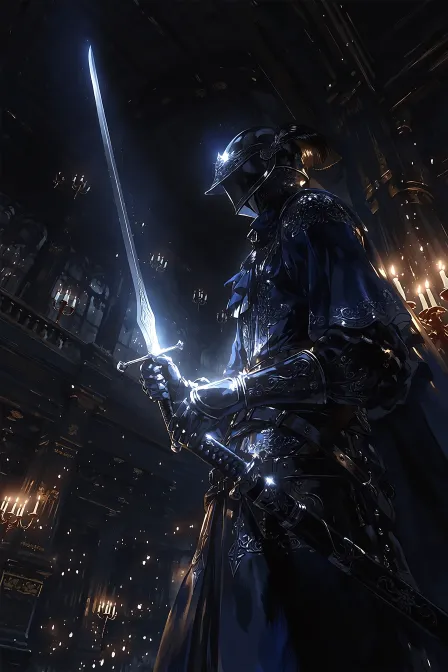 Midjourney Bot 更新时间:2026-02-07 00:04在昏暗的皇宫大厅里,一名明代金衣卫卫兵画着他的修春剑的8K全身极近距离超低角度照片(相机离地面几英寸)。(身穿深蓝色银线绣伊沙袍,黑色铁甲配皮带,带翼头盔:1.2),(秀春剑,剑刃捕捉微光,剑鞘银云纹::1.1)。背景:巨大的木梁、摇曳的烛光和阴暗的石墙。黑暗的电影灯光,带有强烈边缘光的戏剧性背光,盔甲上温暖的烛光。深靛蓝色、墨黑色和暖琥珀色的调色板,融合了历史动作和黑暗的电影现实主义。没有过度饱和的颜色扭曲的比例刺眼的阴影 --ar 2:3 --stylize 280 --niji 7 --no over-saturated colors distorted proportions harsh shadows