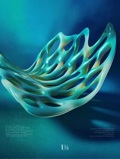 Midjourney Bot 更新时间:2026-02-07 00:14抽象海报设计,背景以渐变的蓝绿色为主,营造出水润的质感。中央有流动感的形状,呈现出不规则的曲线和孔洞,给人一种有机的感觉。 --ar 3:4 --v 7 --stylize 100 --sref https://images.gogpt.vip/aigf/m_origin/20260207/2051902/6vrpiurr3xn5y2fd.jpg --sw 1000