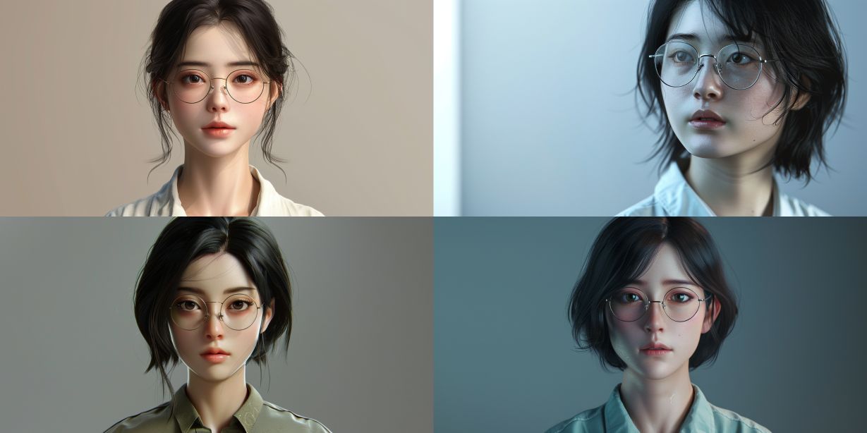Midjourney Bot 更新时间:2024-03-23 00:02Chinese girl with black ear length short hair, wearing glasses and a shirt, elegant, full and tall figure, facial details, photography, ultra clear rendering --ar 2:1 --v 6.0
