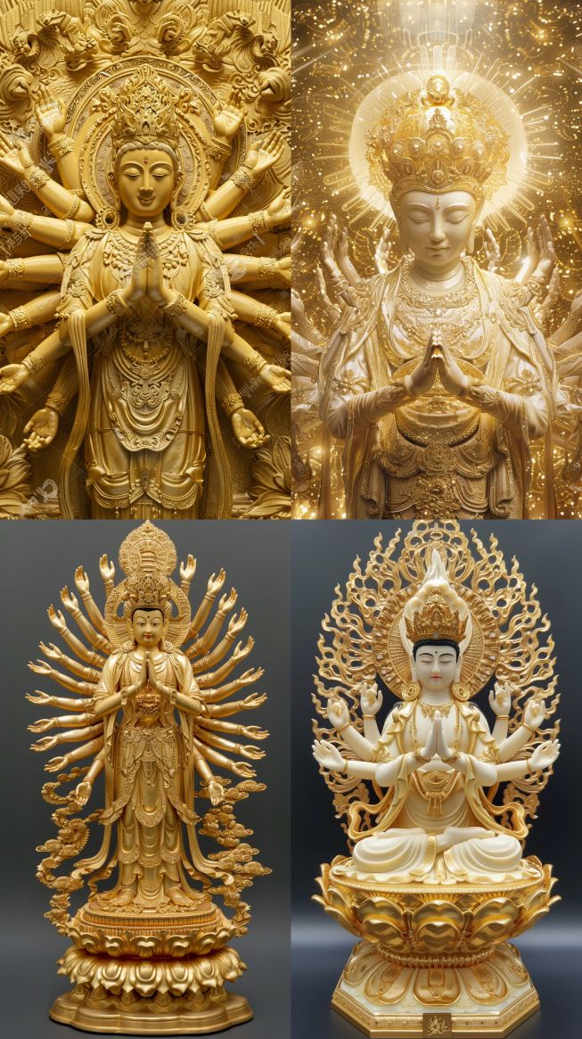 Midjourney Bot 更新时间:2024-03-23 00:04Avalokitesvara Bodhisattva with Thousand Hands and Thousand Eyes, Gold, Gold, Light, the Best Blessings --ar 9:16 --v 6.0