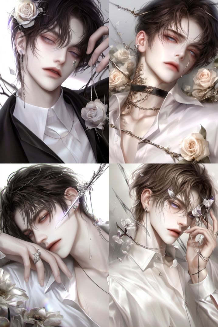 Midjourney Bot 更新时间:2024-03-14 00:07Male, short hair, lying in flowers, sunshine, flowers at dusk, (close your mouth), (close your eyes), mourning, funeral of flowers, super fine portrait, 8k UHD, male focus, hair accessories, ((the highest picture quality)), beautiful eyes, clear, delicate rendering, (((clear)), ((artistic conception)), (transparent), (translucent,) (fine facial features), ((clear picture)), full body picture, anime painting style --s 253 --ar 2:3 --niji 6
