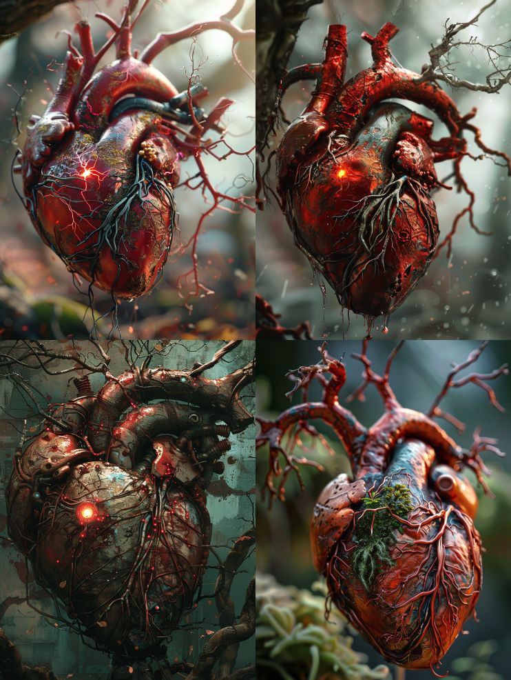 Midjourney Bot 更新时间:2024-03-08 00:12In fiction, we can imagine a fantasy world where the real heart is indeed made of Iron Man with real texture and texture., But it is endowed with magical properties that can transform into the heart of the human body. These hearts have a structure and function similar to real hearts, with a realistic style, luxurious texture, and many branches on them --ar 3:4 --v 6.0