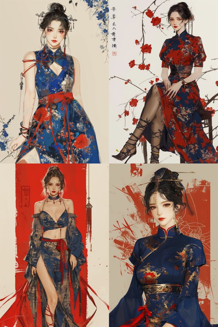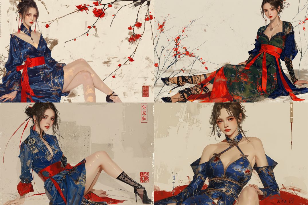 Midjourney Bot 更新时间:2024-03-05 00:12A lady wearing a qipao, full body, high heels, dignified, bold and elegant, meticulous painting, Chinese painting, --sref