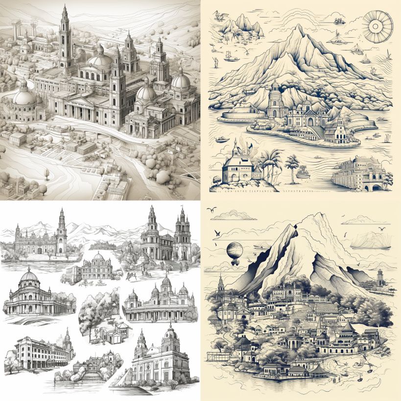 Midjourney Bot 更新时间:2024-03-04 02:45Design drawings suitable for laser engraving, monochromatic, corresponding to famous Colombian attractions on the Colombian map --ar 1:1 --v 5.2
