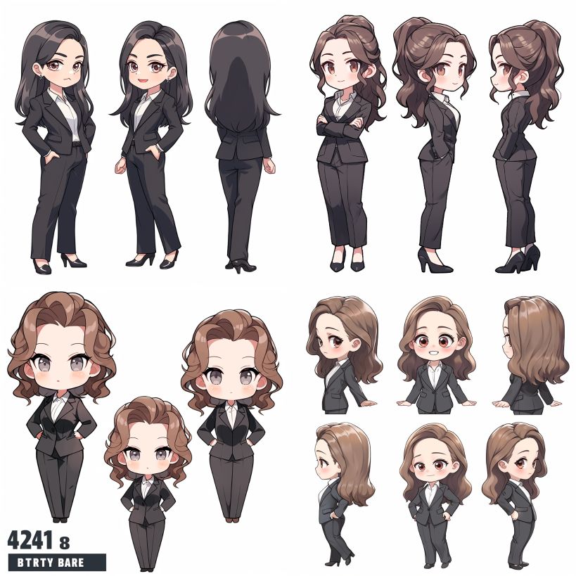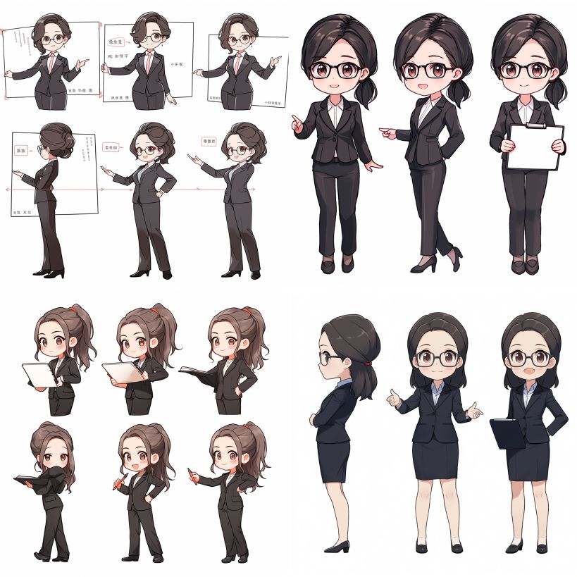 Midjourney Bot 更新时间:2024-03-01 00:074-head, approachable female lecturer, wearing a professional suit, line draft, with simple and smooth structure requirements. Full body shooting, cartoon image three views, generating three views, front view, namely front view, side view, and rear view, maintaining consistency and consistency. Blind box, IP image design, chibi, bubble mat, clean background, natural light, 8k, best quality --ar 1:1 --niji 5