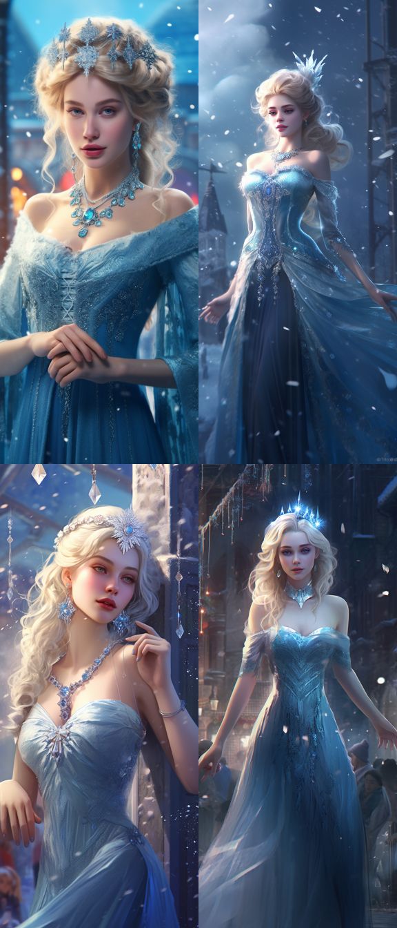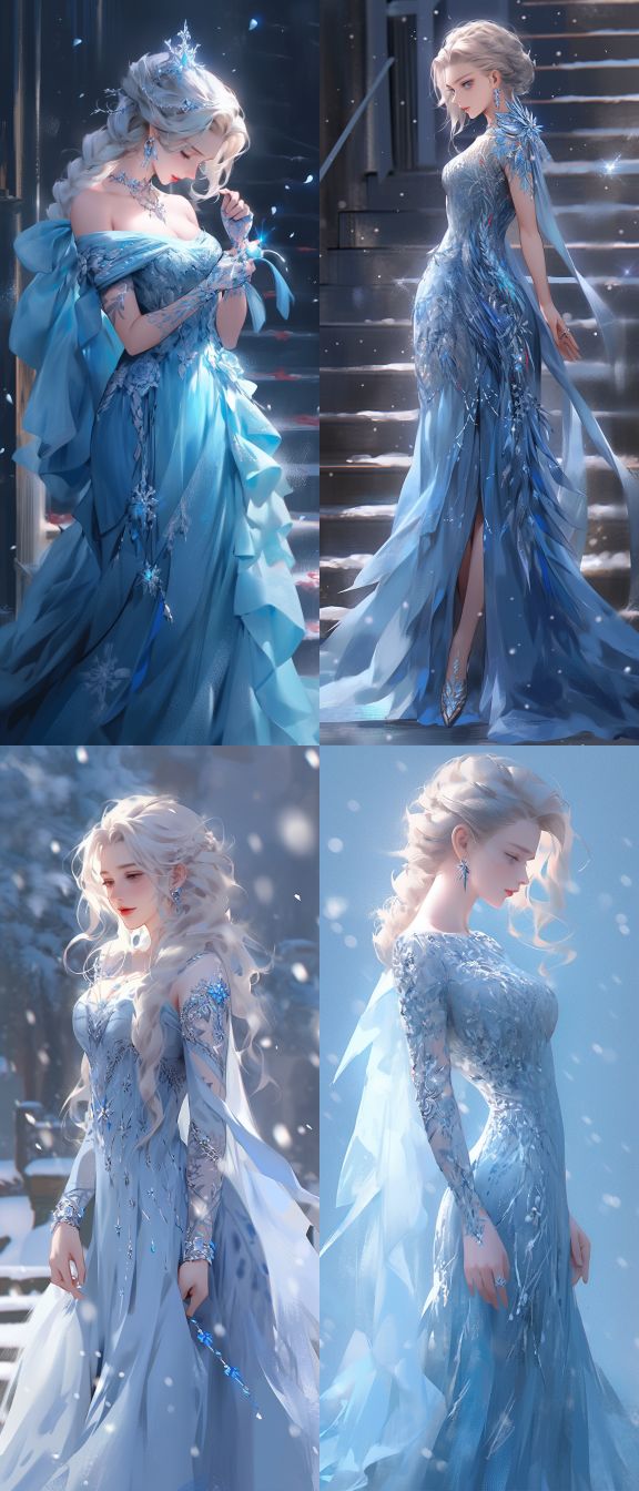 Midjourney Bot 更新时间:2024-02-25 00:06There is a woman wearing a blue dress, wearing a necklace (a beautiful fantasy queen), inspired by the sky blue Shen Sizhen. Smile, stunning, fine hair, winter princess, ice princess, Guviz style artwork, 8K), fantasy aesthetics!, GuviZ. Ice and Snow Queen, 8K high-quality detail art, full body, distant view --ar 329:768 --v 5.1