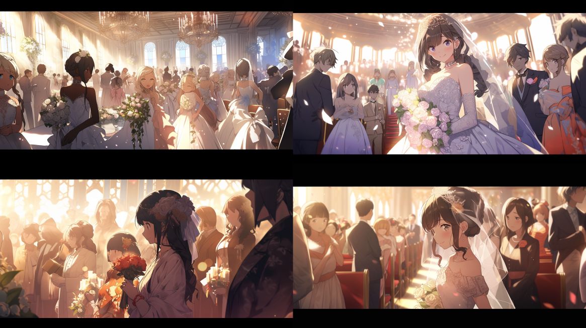 Midjourney Bot 更新时间:2024-02-25 00:07A group of people at the wedding ceremony, featuring real anime characters, game visuals, Takashi Murakami, natural lighting, long shots, 8K HD --ar 16:9 --niji 5
