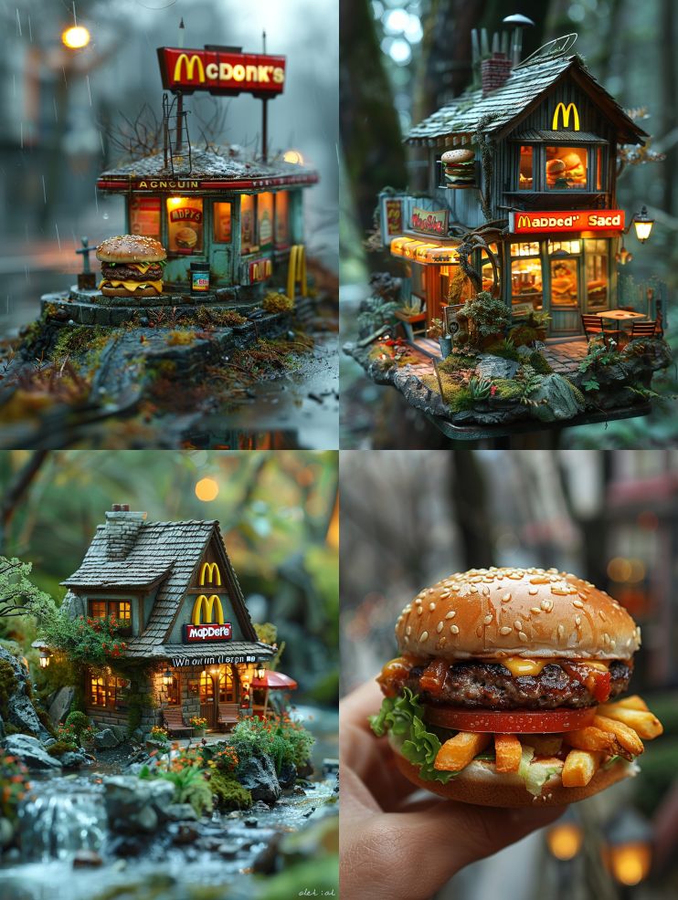 Midjourney Bot 更新时间:2024-02-25 00:13Miniature model McDonald's --s 614 --ar 3:4 --v 6.0
