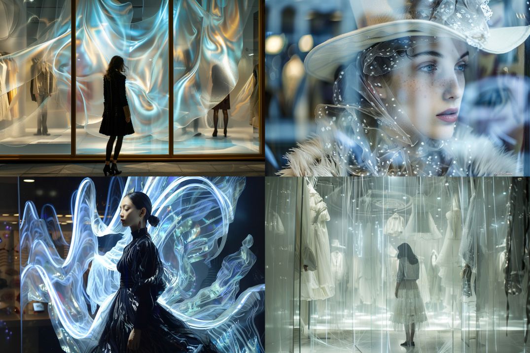 Midjourney Bot 更新时间:2024-02-23 00:06A woman in parallel time and space, in the showcase of women's clothing. Window art decoration is noble, luxurious, fashionable, three-dimensional and realistic --ar 3:2 --v 6.0