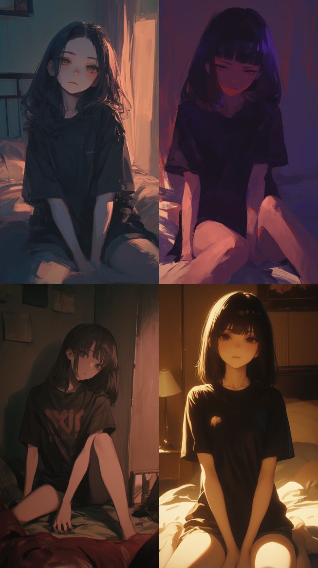 Midjourney Bot 更新时间:2024-02-23 00:11A girl, 18 years old, wearing a black T-shirt, sitting in a dimly lit bedroom, looks very oppressive and mysterious, with a dark tone. - ar 9:16 --ar 9:16 --niji 6