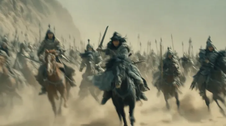 Midjourney Bot 更新时间:2026-03-31 00:17一个长衫侠客,经典武侠电影形象,拔刀冲向千军万马,新派武侠片电影质感,千军万马气势滂破,马匹盔甲质感逼真,高清8k,黄沙漫天,乌云密布 --ar 16:9 --v 7 --stylize 100