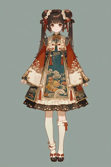 Midjourney Bot 更新时间:2026-03-31 00:18可爱少女,和服,汉洋折衷,全身镜头,小众,款式为小众设计,日系妖怪 --ar 2:3 --stylize 100 --niji 7 --no 麦子