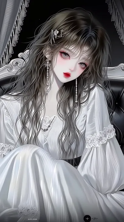 Midjourney Bot 更新时间:2026-03-31 00:19长相绝美的女生,身穿纱裙,衣服纹理清晰显示柔软光泽,高级质感,长发,金丝面帘 发丝跟跟分明光泽自然,桃花眼慵懒不羁,气质优越,微微抬头,眼睛半眯,浅色的唇,项链,大漠风情,冷白色的皮肤,纤瘦身形 ,绝美的脸庞,背景为窗帘,拉上的,沙发,光线较暗,氛围感,笔触,肌理感,极致高清,bjd质感,慵懒 --ar 9:16 --c 63 --stylize 100 --niji 7 --sref https://images.gogpt.vip/aigf/m_origin/20250726/1703502/c39xe5fwbdnvs9xm.jpg --sw 535 --no 不要尖指甲