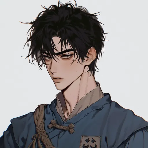 Midjourney Bot 更新时间:2026-03-31 00:20古风玄幻漫剧画风,精致线条,高饱和度,电影级光影,韩漫美型脸,干净背景,高清细节,适合动态漫 17岁少年,黑发微乱,碎刘海,眼神坚定又隐忍,右眼微垂,左眼锐利,身穿灰蓝色粗布短打,腰间系旧布带,胸口半块榫卯玉符,气质清冷倔强,底层少年感,侧脸线条干净,全身立绘2D漫画风 --ar 1:1 --stylize 100 --niji 7