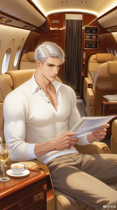 Midjourney Bot 更新时间:2026-03-31 00:21https://images.gogpt.vip/aigf/m_origin/20260330/2102034/rlmc2wmjqmu82il6.png CG厚涂,游戏建模,细节刻画到位。年轻英俊男人,银白寸头,薄肌,干净利落。穿着手工高定质感很好的白色v领针织衫,不要出现衬衫领,下搭卡其色裤子,尽显老钱风。在装饰豪华的湾流私人飞机机舱,有酒柜和组合沙发,茶几,坐着处理文件。慵懒惬意的氛围,电影感布光,85mm镜头。中景,近景,高级感,8k超清画质。画面清透干净。 --ar 9:16 --stylize 100 --niji 7 --no 六指,指甲过长,杂乱背景,多余物体。