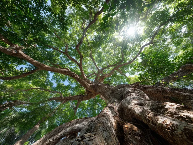Midjourney Bot 更新时间:2026-03-31 00:23高大蜿蜒的树木,巍峨雄伟,充满生命力,仰拍视角,电影级光影,富有戏剧感的阴影,超清晰质感,照片级写实,高细节,专业摄影作品 --ar 4:3 --v 7 --style raw --stylize 100