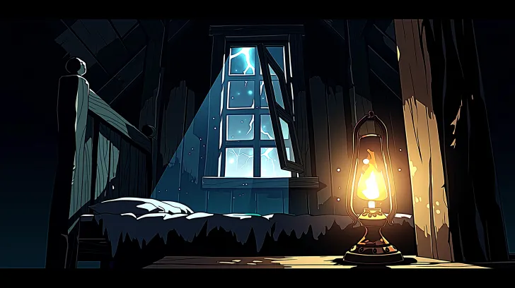 Midjourney Bot 更新时间:2026-03-31 00:25破旧阁楼室内,昏暗油灯照明,老旧木床,摇摇欲坠的木窗,油灯暖光与窗外闪电冷光对比,压抑氛围,简陋陈设,木质感,电影感布光,正面视角,二次元动漫风格,高级动漫。8K超高清,大师作品,极致细节 --ar 16:9 --c 28 --weird 100 --stylize 100 --niji 7 --sref https://images.gogpt.vip/aigf/origin/20260330/1774877259069862_3.png https://images.gogpt.vip/aigf/origin/20260328/1774695250950704_4.png https://images.gogpt.vip/aigf/origin/20260329/1774714313876470_1.png