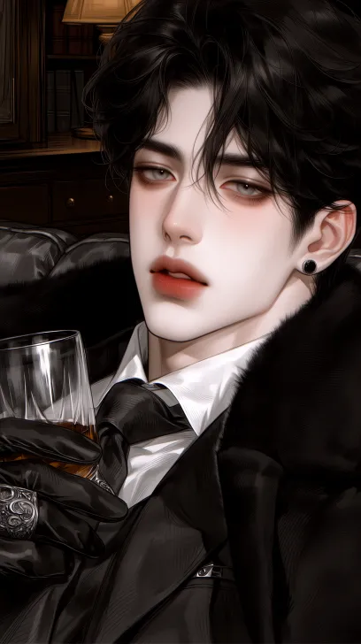 Midjourney Bot 更新时间:2026-03-31 00:25精致漂亮的男性五官,细长眼尾微微上挑,灰黑色通透瞳色,纤长浓密的睫毛,皮肤白皙细腻,微微眯眼,鼻梁高挺,唇形饱满偏粉,表情冷漠,看向镜头。利落后梳大背头,发丝全部整齐向后梳理定型,发根蓬松挺立,两侧头发剃短渐变,顶部发丝柔顺服帖且根根分明,发际线清晰利落,整体发型硬朗有型,成熟干练不凌乱 黑色高定西装,真丝白衬衫,深色领带,长款毛呢大衣,金属袖扣,皮质手套 姿势动作:坐在沙发上,身体微前倾,姿态强势压迫,气场沉稳 道具:雕花金属戒指,复古威士忌酒杯, 暗调复古氛围,暖黄侧光勾勒轮廓,背景为昏暗复古书房,木质书架与朦胧台灯,电影感光影,氛围感拉满 --ar 9:16 --stylize 777 --niji 7 --profile xgsftjj stfbdsp ygrzsnf --no 精灵耳
