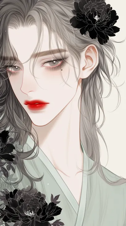 Midjourney Bot 更新时间:2026-04-01 00:00一个俊美青年男人,长发,凌乱 ,绝美眼睛,黑色眼线,双眼对称,细节眼睛刻画,淡绿色汉服,红唇,黑牡丹花,迷人的人物插画,夏天,慵懒,细腻流畅线条,构图完美,anime,sketching ,动漫插画,线条流畅 --ar 9:16 --style raw --stylize 100 --niji 6 --no no