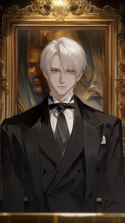 Midjourney Bot 更新时间:2026-04-01 00:00半写实,白发,冷静,黑眼睛,宽大,帅气,纹身,高质量,黑手党,俄罗斯,全身镜头,穿着西装,二十多岁,背景华丽,严肃,看着镜头,不笑,高级cg --ar 9:16 --stylize 100 --niji 7