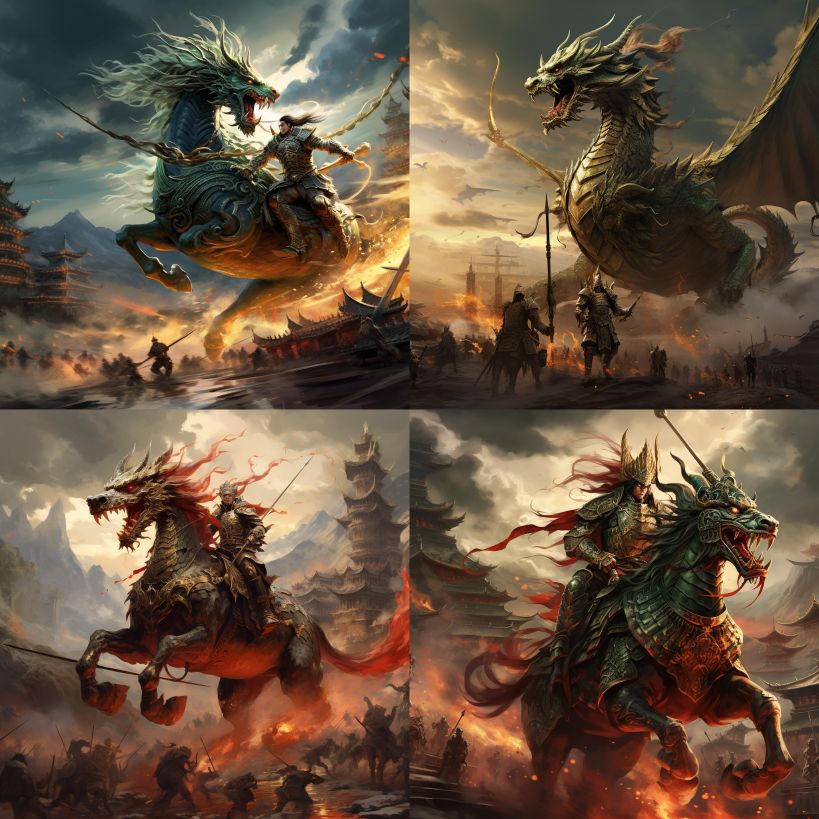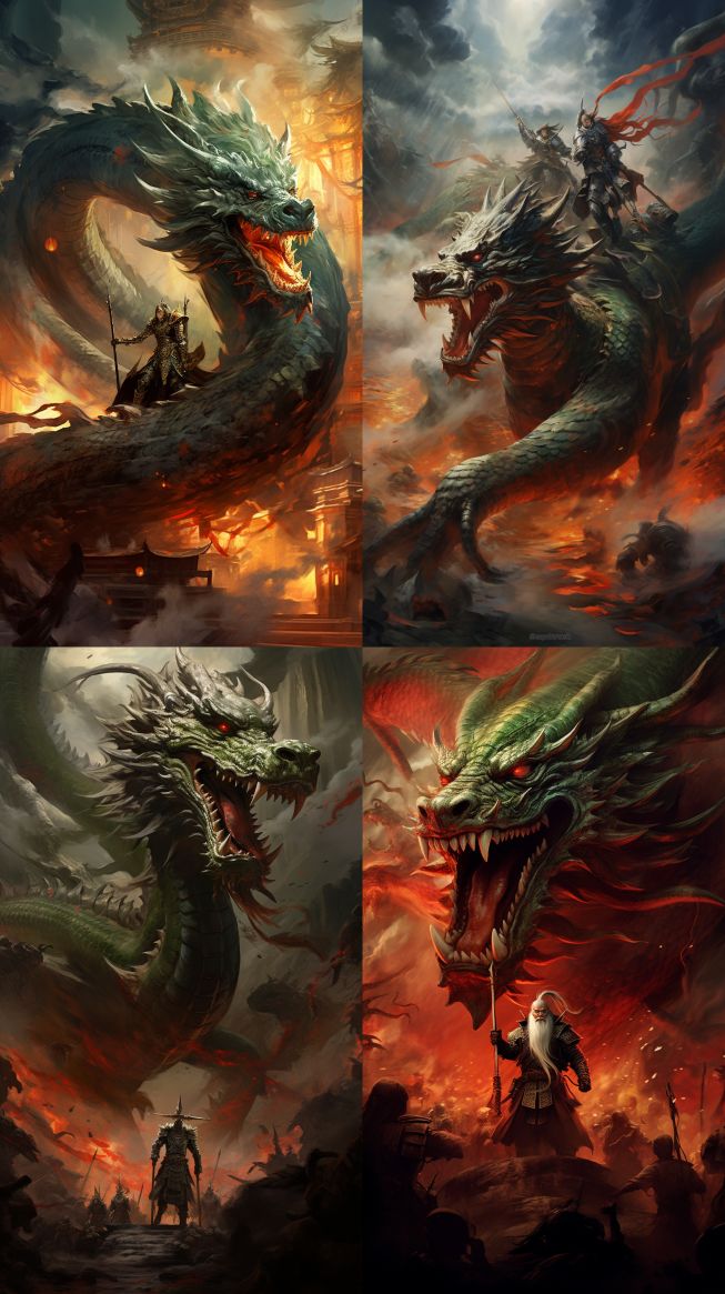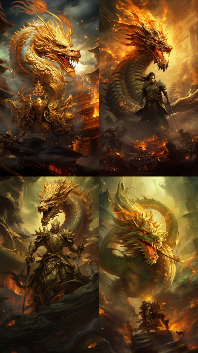 Midjourney Bot 更新时间:2024-01-07 00:14Dragon, Aurora, Chinese Dragon, Golden Dragon, Ancient China, Ancient Battlefield, Chinese Heavenly God, Mythology, General, Carriage, War, Combat, Soldiers, Sword --ar 9:16 --v 5.2