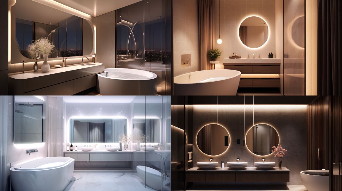 Midjourney Bot 更新时间:2023-12-31 00:07In the late night, a modern style bathroom was filled with faint lights. The mirror wall reflects subtle light and shadow, outlining charming curves. The ceramic floor in the bathroom emits a subtle luster, as if a starry sky is flickering. The faucet dripped gently, making a pleasant sound, creating a harmonious symphony with the quiet night. Soft steam permeates the air, giving people a sense of tranquility and relaxation. The entire scene seems like a modern artwork, full of mystery and alluring charm. --ar 16:9 --niji 5