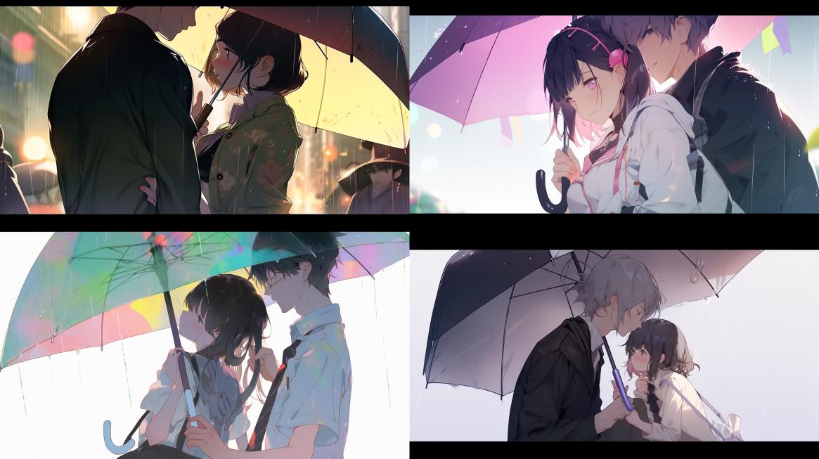 Midjourney Bot 更新时间:2023-12-19 00:04Cute Human Male and Female Umbrella Dreams Love Farewell to the Online World --ar 16:9 --style expressive --niji 5