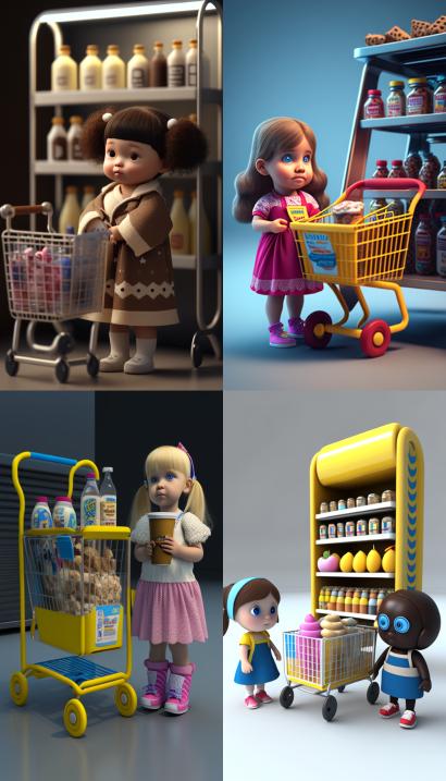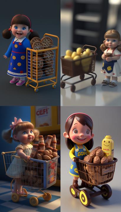 Midjourney Bot 更新时间:2023-12-19 00:07A happy little girl, next to her is a shopping cart with cookies, milk, chocolate, bananas, apples, pears, 3D art, c4d, octane rendering, ray tracing, part blind box, claim material, pixar trend, animated lighting, depth of field, super detail --c 32 --ar 9:16 --v 4