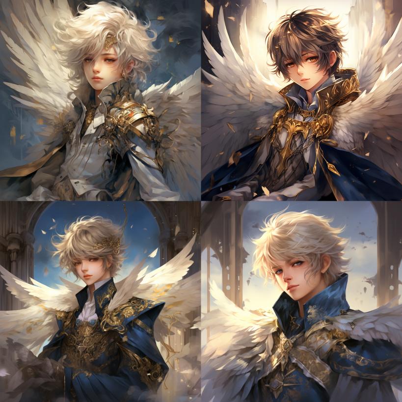 Midjourney Bot 更新时间:2023-12-19 00:07young boy dressed in an anime outfit with feathered wings, in the style of ethereal romanticism, portrait paintings, light navy and light gold, changelingcore, official art, elegant, emotive faces, kushan empire --ar 1:1 --style raw --v 5.2