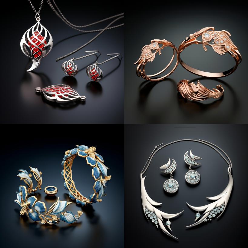 Midjourney Bot 更新时间:2023-12-19 00:08Help me design a jewelry set that incorporates Yangshao fish patterns into modern jewelry design. The fish pattern elements are obvious, and the design is innovative and luxurious. The design should be simple and not too complex --ar 1:1 --style raw --v 5.2