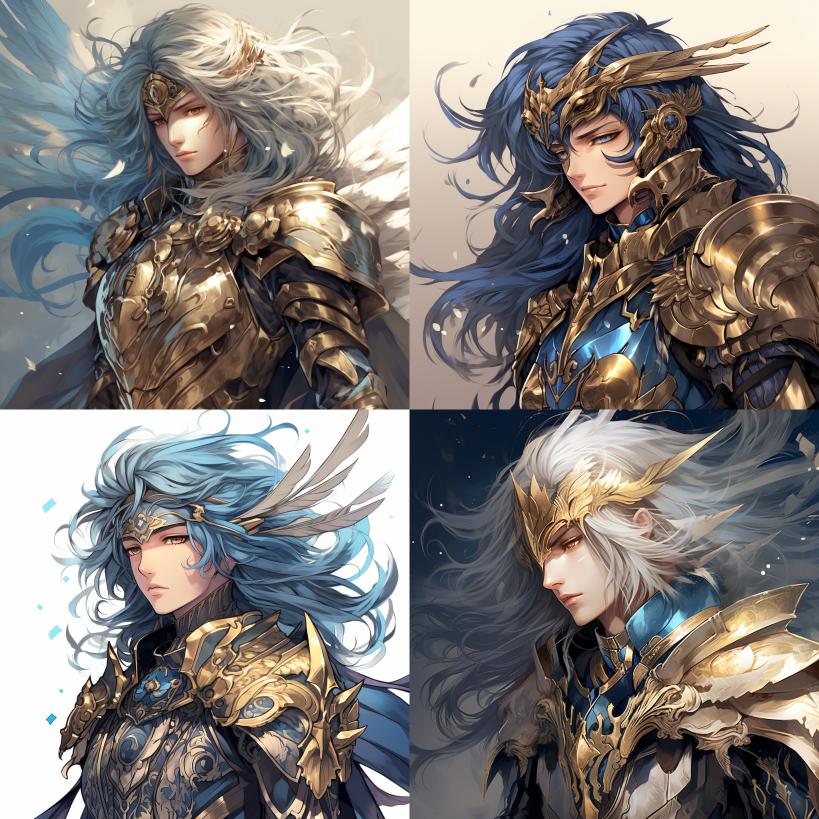 Midjourney Bot 更新时间:2023-12-19 00:08an anime character with long hair wearing a helmet, in the style of , ethereal fantasy, , light gold and dark azure, , handsome, fine feather details --ar 1:1 --style raw --v 5.2